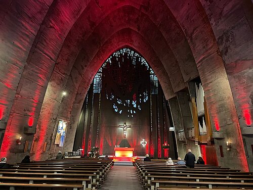 Am 30.11.2024 um 18.00 Uhr öffneten sich die Türen in St. Hedwigskirche zur Adventsfeier mit bunter Anstrahlung der Kirche, feierlicher Gottesdienst durch Pfr. Unfried und Diakon Kreuter mit vielen Messdinerinnen und Messdiener und schwungvoller Orgelmusik. Pfr. Unfried entzündete die 1. Kerze an dem von Frauen aus St. Hedwig selbstgebunden Adventskranz. Die Kirche war gut besucht. Nach dem Gottesdienst wurde der kleine Adventsmarkt für 3 Adventssamstage eröffnet. Wegen der Kälte in der Kirche kamen der kostenlose heiße Tee und die heißen Säfte sehr gut an. Der Verkauf der gespendeten Sachen und Lebensmittel florierte. Der Erlös kommt dem Förderkreis St. Hedwig zu Gute. Die Gemeinde St. Hedwig wünschte allen Besuchern eine friedvolle, geruhsame und besinnliche Adventszeit.