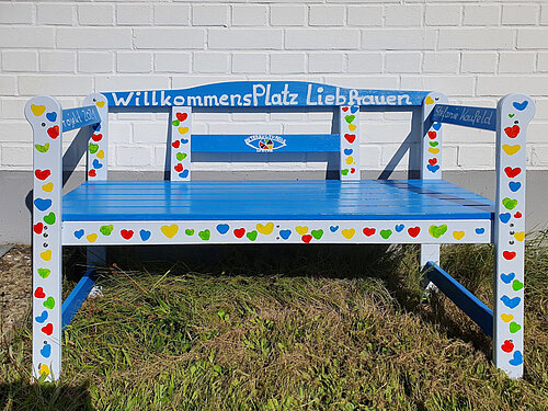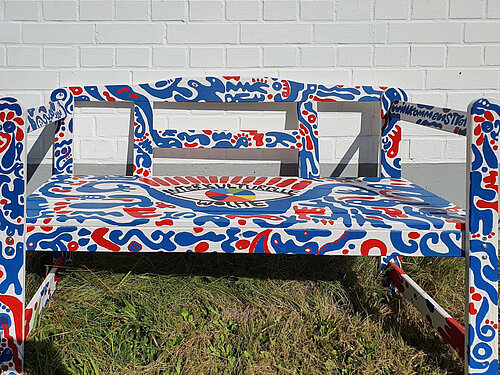Die Bank „WillkommensPlatz Liebfrauen“ ist während der Kunsttherapie unter der Leitung von Stefanie Kaufeld entstanden.