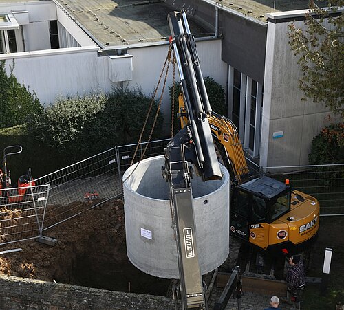 Vielleicht hat sich die eine oder der andere Ende Februar schon gefragt, warum ein Bagger ein doch recht großes Loch auf dem Kirchengelände von St. Sebastian ausgehoben hat. Nach einem Schatz aus Gold und Silber wurde nicht gegraben, aber doch geht es bei der Aktion um einen ganz wertvollen Schatz: WASSER