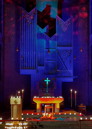 Unsere Einsätze sind projektbezogen und die Einsatzorte vielfältig, vom einfachen Ausleuchten mit statischem, bunten Licht (z.B. "#PrayTogether" in Liebfrauen), über dynamische Farbwechsel passend zu den Kernelementen der Veranstaltung (z.B. "Erster Advent" in St. Hedwig, "Licht werden" in St. Sebastian), bis hin zu ausgefeilten Licht- und Lasershows (z.B. die "Karfreitag-Meditation" in St. Petrus Canisius, diverse "#mutausbruch"-Veranstaltungen).