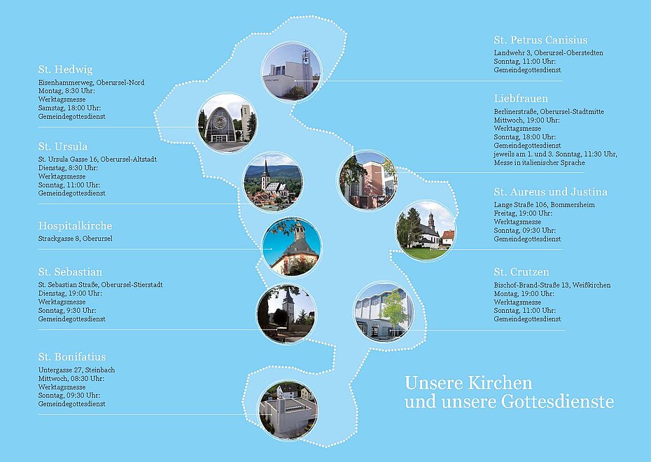 Eine Übersicht über die regelmäßigen Gottesdienste finden Sie in der Übersichtsgrafik: