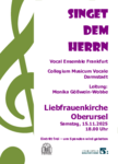 Zwei Chöre, das Vocal Ensemble Frankfurt und der Partnerchor Collegium Musicum Vocale Darmstadt, unter der Leitung von Monika Gößwein-Wobbe spannen…