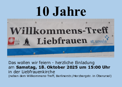 Herzliche Einladung im Namen des Teams des Willkommens-Treffs zur 10Jahres-Feier des Willkommens-Treffs in Liebfrauen.