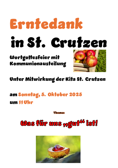 Herzliche Einladung zur Erntedank-Feier am 5.10.2025 um 11 Uhr in der Kirche St. Crutzen!