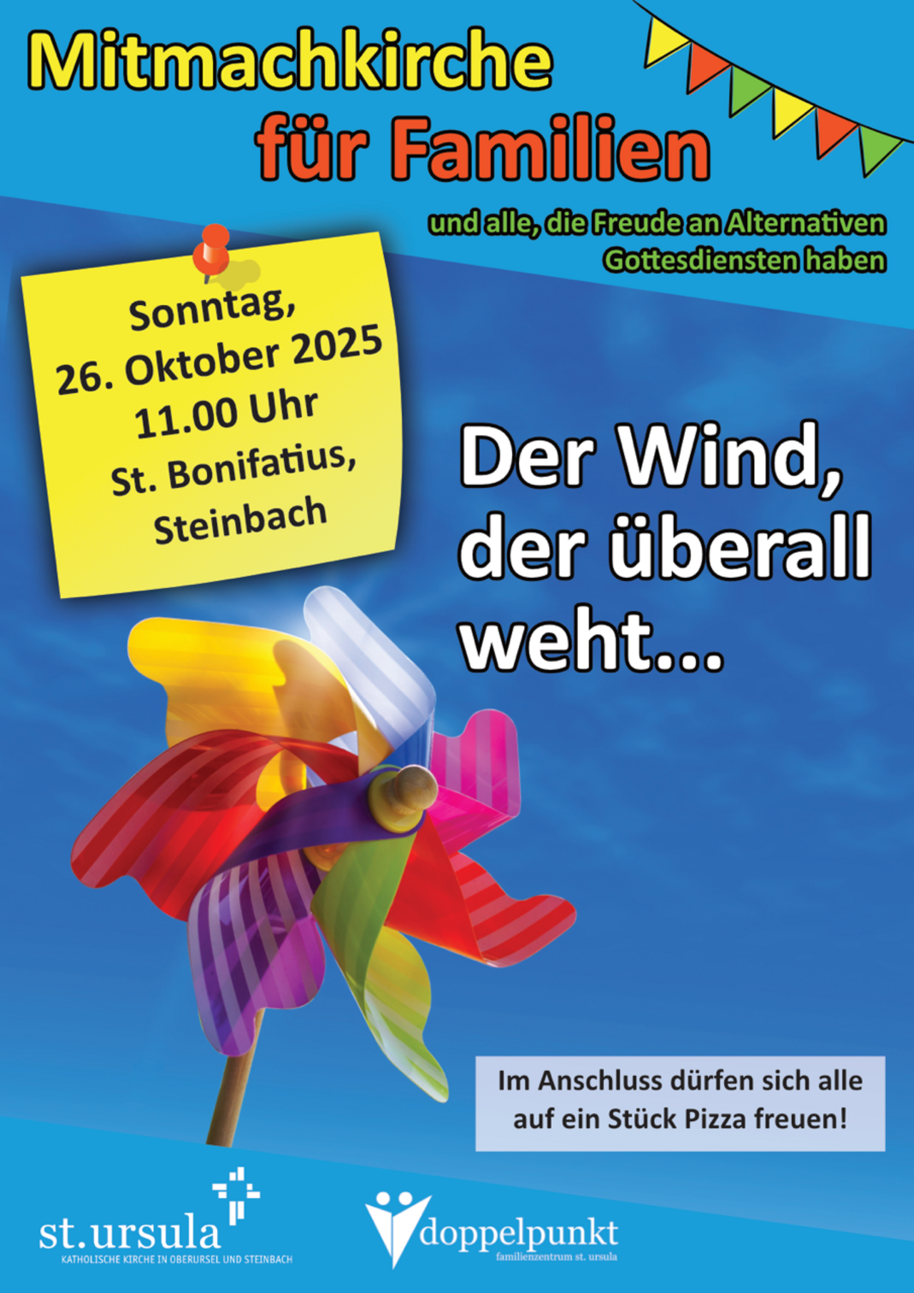 Wir feiern zum ersten Mal Mitmachkirche in St. Bonifatius in Steinbach am So. 26. Oktober 2025 um 11.00 Uhr.
