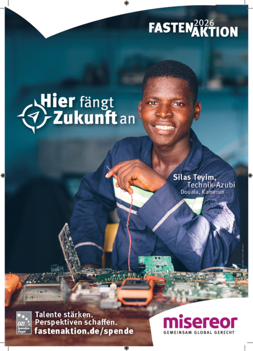 Gehen müssen wir in diese Zukunft gemeinsam. Als Weltgemeinschaft, die im Zuge der Globalisierung immer stärker zusammenrückt. Wenn wir uns gegenseitig stützen, einander mit unseren Bedürfnissen wahrnehmen und aufeinander eingehen, dann können, dann werden wir diese Zukunft positiv gestalten. Die Bedeutung von Bildung und Ausbildung kann dabei nicht hoch genug eingeschätzt werden, denn sie ist der Schlüssel zu einem selbstbestimmten und erfüllten Leben. Gleichzeitig – wenn man bedenkt, dass das Leitwort immer auch ein erster Teaser ist – macht das „Hier“ in „Hier beginnt Zukunft“ neugierig: Wo ist hier? werden sich diejenigen fragen, die das Leitwort auf dem Aktionsplakat lesen. Und welche Rolle spiele ich, als Multiplikator*in, Spender*in, ja als Mitglied von Kirche in Bezug auf das „Hier“?