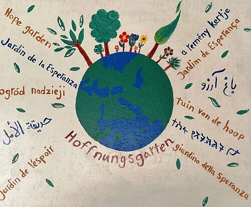 Ein kleines Zeichen, wie durch gemeinsames Tun etwas Neues und Schönes entstehen kann, ist unser Hoffnungsgarten. Er lädt alle ein, in vielen Sprachen. Aber es braucht eigentlich keine Worte, um das Ganze zu verstehen.